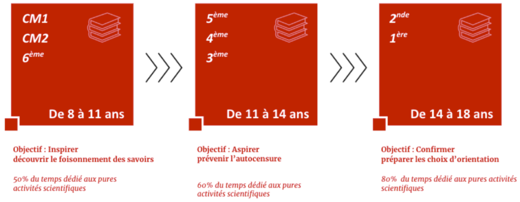 Les Sciences Camps sont organisés de manière évolutive pour accueillir les jeunes de 8 à 18 ans :