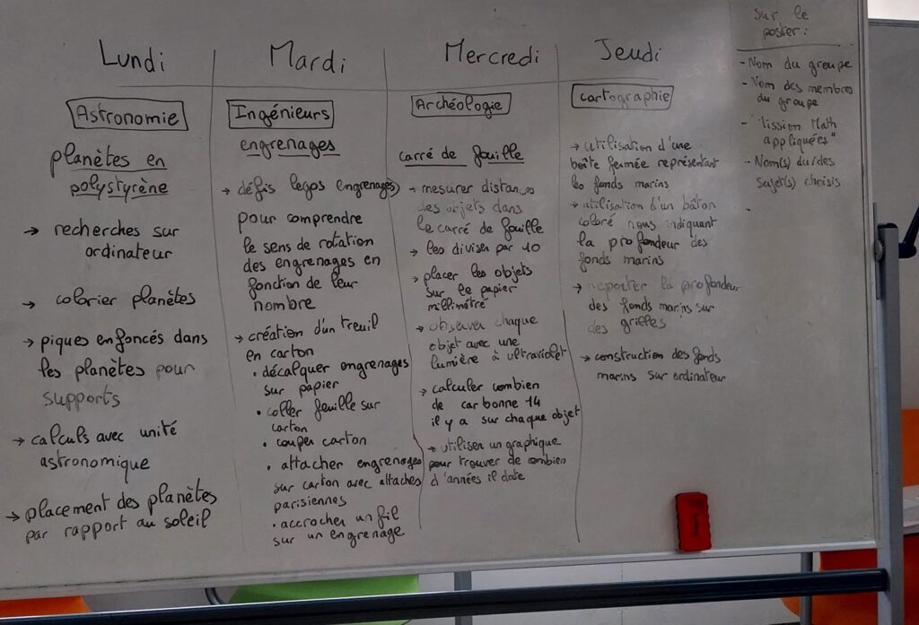 Les jours suivants sont eux aussi bien remplis en expériences en tout genre pour les deux thématiques.