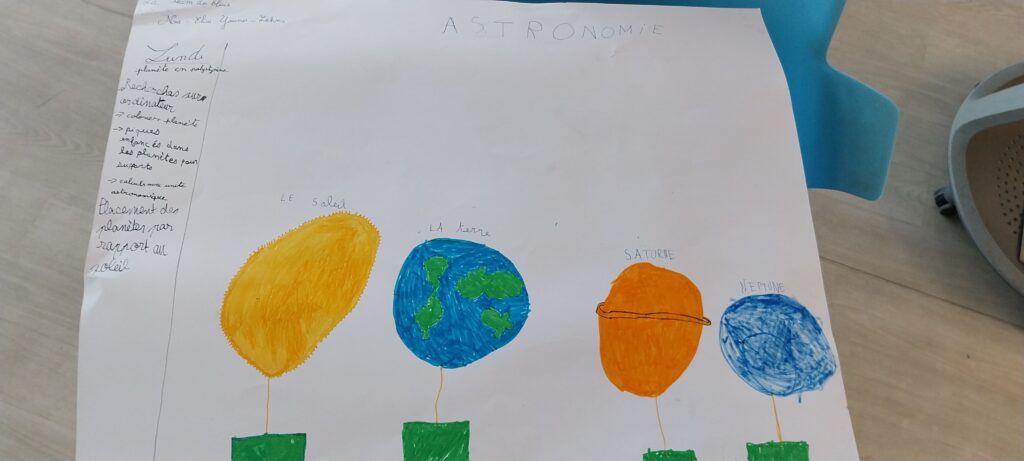 Pour ce dernier jour, les enfants s'activent de bon matin : il est l'heure de réaliser leur poster scientifique, qui récapitule ce qu'ils ont découvert tout au long de la semaine. Si certains s'appuient sur leurs fidèle carnets de scientifiques, d'autres préfèrent faire confiance à leur mémoire... ou au récapitulatif de l'animatrice !