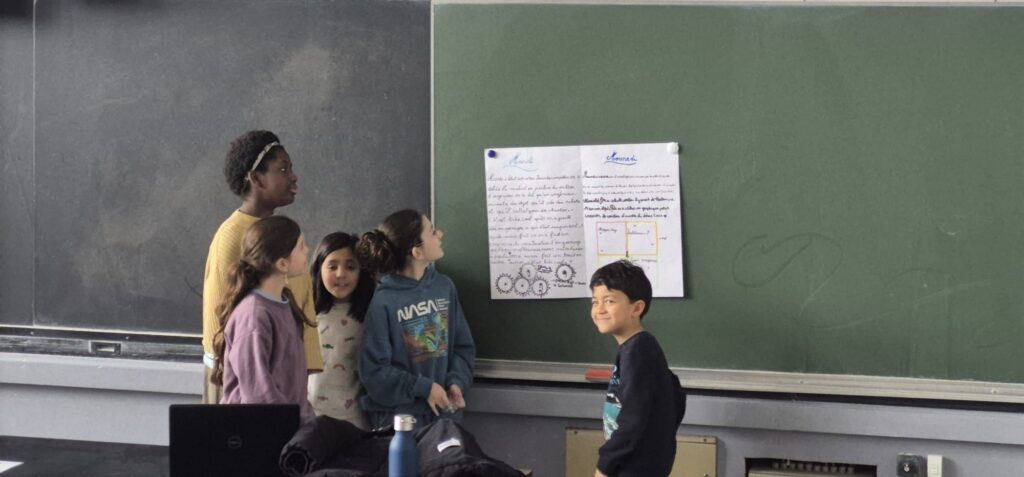Place ensuite à la restitution, devant tous les autres enfants et quelques spectateurs de l'université. Certains enfants sont plus timides que l'autre, mais tous prennent la parole et sont chaleureusement félicités pour leur excellent travail.